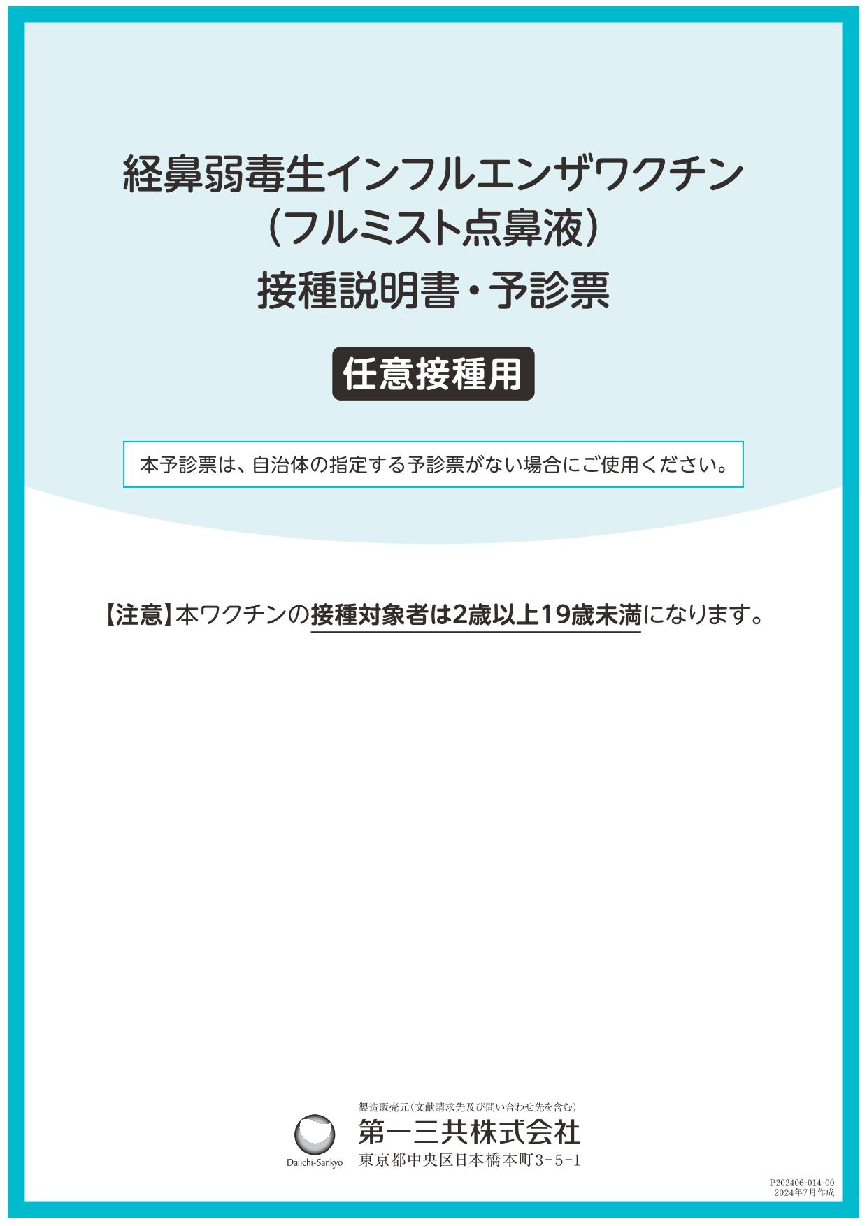 フルミスト(経鼻インフルエンザワクチン)の予約をうけたまわります